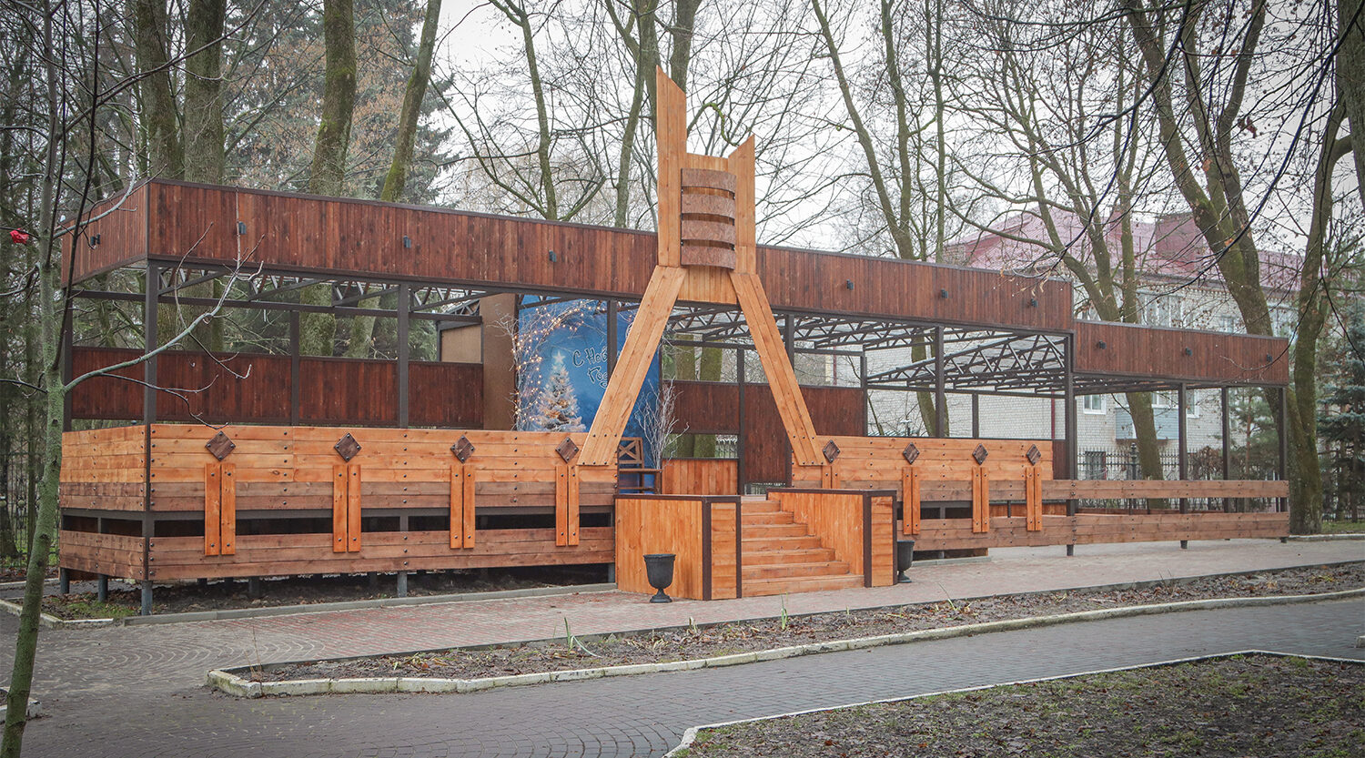 У входа строители уложили плитку и установили бордюры. Зрительный зал центра вмещает до ...