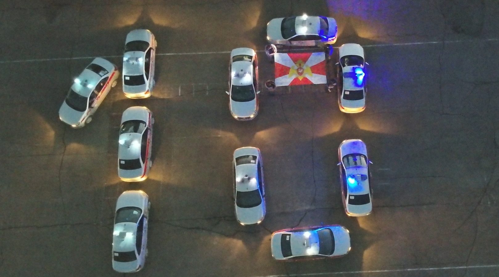 Автомобили вневедомственной охраны выстроились в определенном порядке и ...