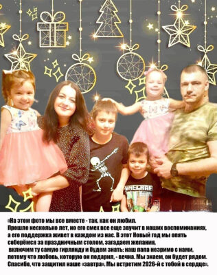 Четверо детей, четыре вселенных, оставшихся без своего солнца: Денис, Кирилл, Алёна, Алина. Он строил для них планы, мечтал о будущем. «Он обещал ещё раз съездить с нами на море и впервые полетать вместе на самолёте не как военный, а как турист, — шепчет старший сын, стараясь быть сильным. — Теперь я буду заботиться о маме и сестрах. Я обещал папе в последний раз, когда видел его по видеосвязи». А его младшие сестры всё ещё рисуют папу в голубом берете на фоне неба и спрашивают, большая ли звезда Героя, которая теперь лежит у мамы в шкатулке.